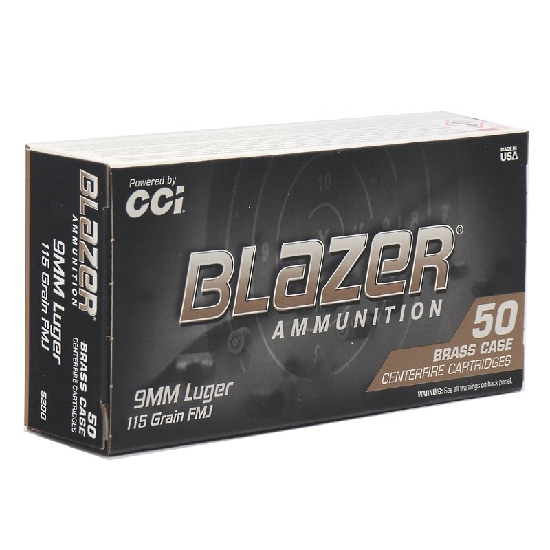 CCI Blazer Brass 9mm Luger Ammo 115 Grain Full Metal Jacket ammo review offers the following information; 9mm Blazer Brass ammo made by CCI is your best choice for bulk 9mm target shooing ammunition. Newly manufactured 9mm ammo here in the United States, that features a full metal jacket copper plated bullet, brass casing, non-corrosive primers. Made by the same company that manufactures Speer Lawman 9mm ammo as well as the Federal American Eagle 9mm ammunition Blazer Brass 9mm Luger ammo features the same great quality components and manufacturing equipment. If you choose to reload your 9mm ammo, CCI Blazer Brass offers virgin brass that can be reloaded up to 5 times due to its exceptional high quality and low mixtures of other materials. Trusted CCI has gone above and beyond with the Blazer Brass line! With the same high standards that shooters have come to know and love with standard Blazer ammo, the Blazer Brass line gives the benefit of a brass casing making it reloadable. 9mm Luger by CCI are an excellent choice for target practice or just plinking around at the range. CCI Blazer Brass 9mm Luger is a new production, non-corrosive, re-loadable ammunition with boxer primers and brass casing.