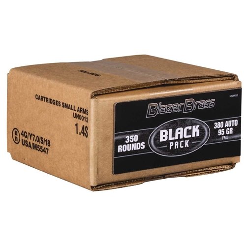 CCI Blazer Brass Black Pack 380 Auto Ammo 95 Grain FMJ 350 Rounds for sale online at cheap discount prices with free shipping available on bulk 380 ACP Auto ammunition only at our online store TargetSportsUSA.com. Target Sports USA carries the entire line of CCI ammunition for sale online with free shipping on bulk ammo including this CCI Blazer Brass Black Pack 380 Auto Ammo 95 Grain FMJ 350 Rounds.