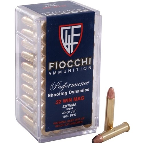 Fiocchi 22 WMR Ammo 40 Grain Jacketed Soft Point ammo for sale online at cheap discount prices with free shipping available on bulk 22 WMR ammunition only at our online store TargetSportsUSA.com. Target Sports USA carries the entire line of Fiocchi ammunition for sale online with free shipping on bulk ammo including this Fiocchi 22 WMR Ammo 40 Grain Jacketed Soft Point .