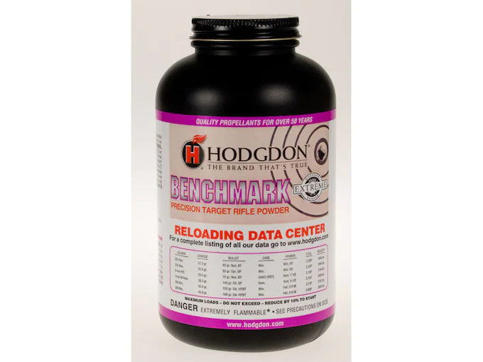Hodgdon Benchmark,as the name implies, this Extreme Extruded propellant was developed for precision cartridges. As such, it is ideally suited for benchrest and small varmint cartridges like the 6mm PPC, 22 PPC, 6mm BR, 223 Rem. and 222 Rem. Additionally, it performs superbly in the 204 Ruger and with light match bullets in 308 Winchester. With small, easy metering granules, competitors will love how it flows through progressive presses.