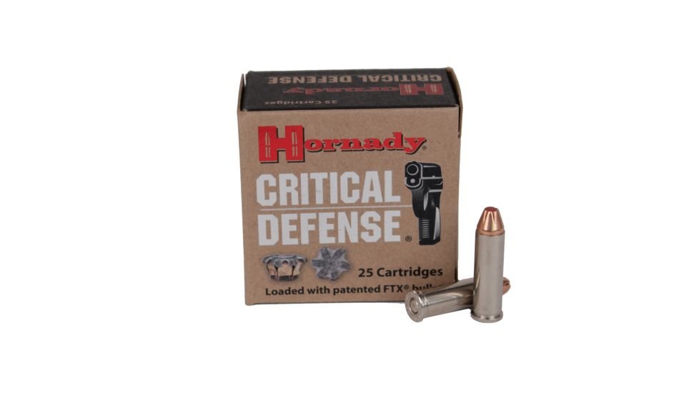 The FTX – at the forefront of Critical Defense – maximizes the potential of a hollow point bullet. Its patented Flex Tip aids expansion and eliminates clogging when passing through clothing. Nickel-plated cases increase visibility in low light situations. Low-flash propellants won’t disrupt night vision and deliver consistent performance, every time.