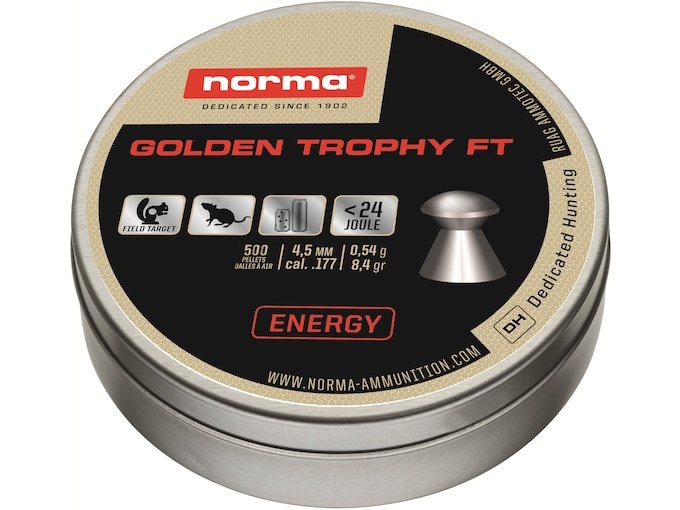 The Norma Golden Trophy FT Air Gun Pellets feature twice the knockdown power of standard air gun pellets and have excellent precision at long ranges.