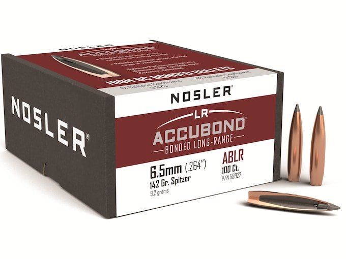 Nosler AccuBond Long Range Bullets 264 Caliber, 6.5mm (264 Diameter) 142 Grain Bonded Spitzer Boat Tail Box of 100