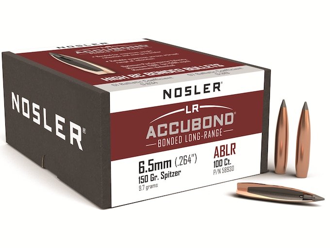Nosler AccuBond Long Range Bullets 264 Caliber, 6.5mm (264 Diameter) 150 Grain Bonded Spitzer Boat Tail Box of 100