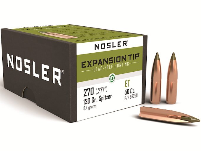 Nosler E-Tip Bullets 270 Caliber (277 Diameter) 130 Grain Spitzer Boat Tail Lead-Free Box of 50
