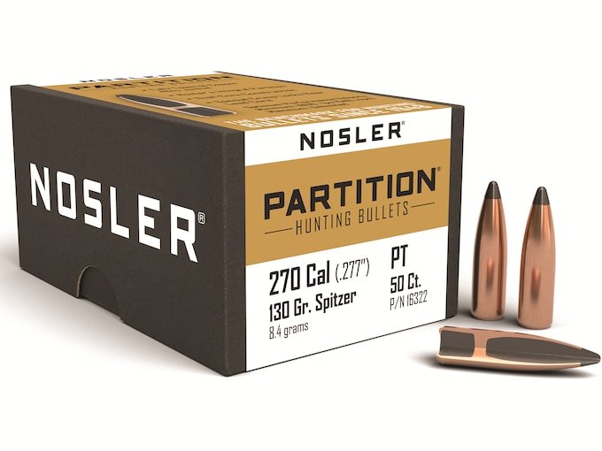 Nosler Partition Bullets 270 Caliber (277 Diameter) 130 Grain Spitzer Box of 50