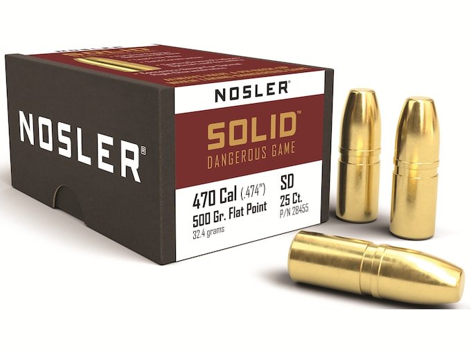 Nosler Solid Bullets 470 Nitro (475 Diameter) 500 Grain Flat Nose Lead-Free Box of 25