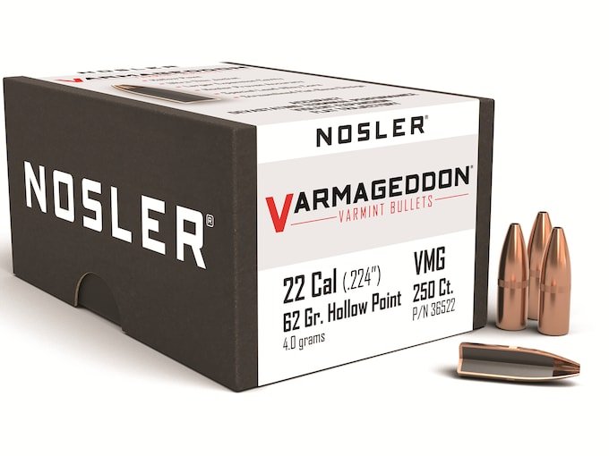 Nosler Varmageddon Bullets 22 Caliber (224 Diameter) 62 Grain Hollow Point Flat Base