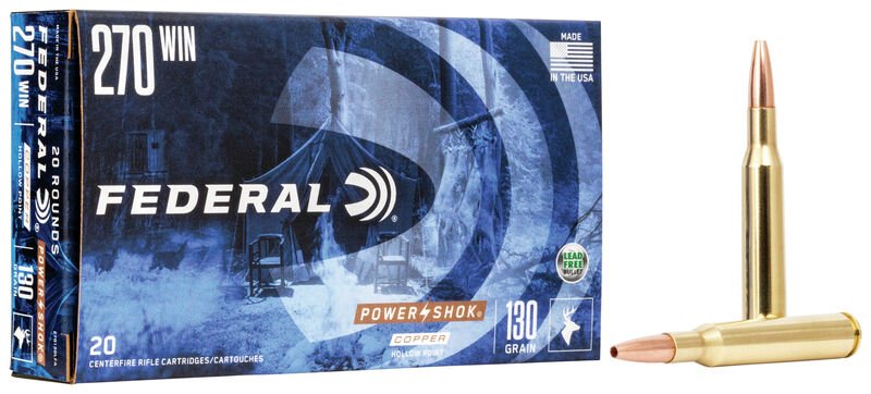 Practical hunters trust Federal® Power•Shok® rifle ammunition to deliver performance that fills the freezer at an attractive price. Power•Shok Copper provides that same consistency and value in a non-lead bullet. The loads feature an accurate, hollow-point, copper-alloy projectile that creates large wound channels.