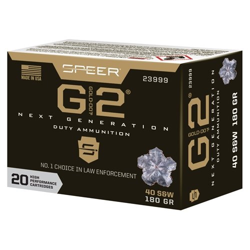 Speer Gold Dot G2 40 S&W Ammo 180 Grain Jacketed Hollow Point ammo review offers the following information; Settled in Lewiston, ID, Speer ammunition has been synonymous with safety for Law Enforcement for years and the Gold Dot line built the reputation line from the ground up! Speer Gold Dot Ammunition keeps ruling the law enforcement community. With tested dependability and consistency from round to round, Gold Dot blows the competition out of the water. Broken down into three separate classes, Speer Gold Dot Personal Protection, Speer Gold Dot Short Barrel Personal Protection and Speer Gold Dot Handgun Hunting, all of which have the trusted quality and superiority that Speer consumer have grown to expect. Ammunition is loaded with bonded core bullets and designed for home defense and personal protection.