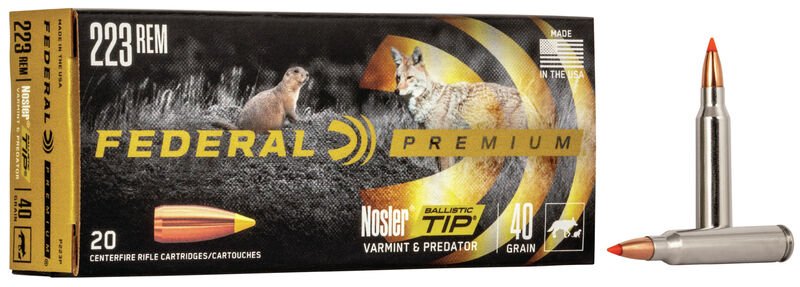 Long distances, stiff breezes and tough predators are no match for the Nosler® Ballistic Tip® Varmint. The bullet’s thin jacket produces violent energy release and minimal penetration, while its boat-tail design and polymer tip produce less bullet drop and wind drift.
